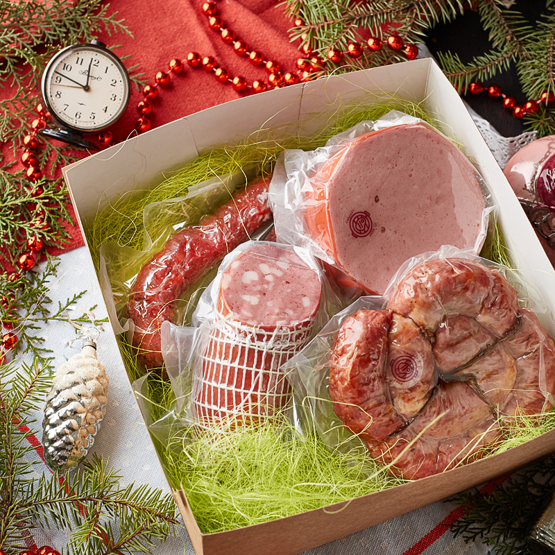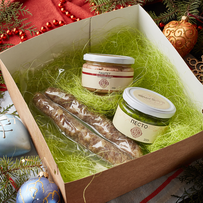 Подарочный набор из домашней колбасы, ветчины из свинины и пастеризованного паштета из куриной печени